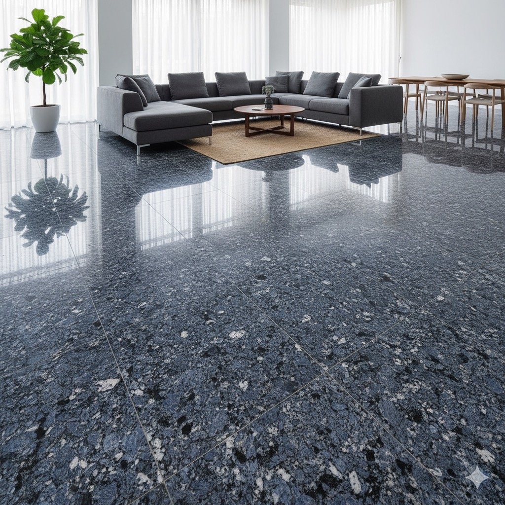 Le Granit Azul Transmontano est extrait des carrières du nord du Portugal, reconnues pour la pureté et la stabilité de leur matière.