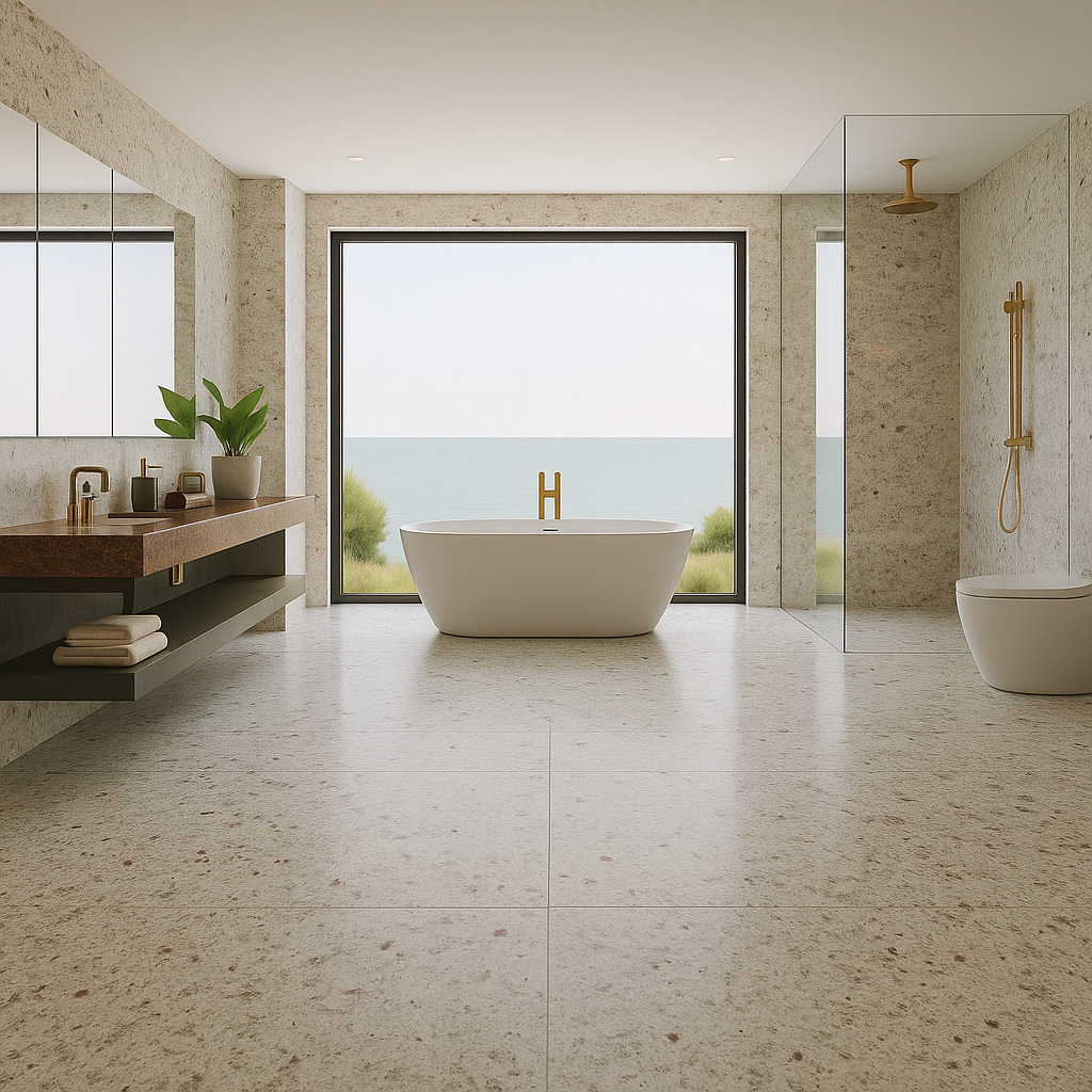 Cette pierre naturelle claire, associée à des finitions précises, apporte une élégance sobre et raffinée à chaque espace.