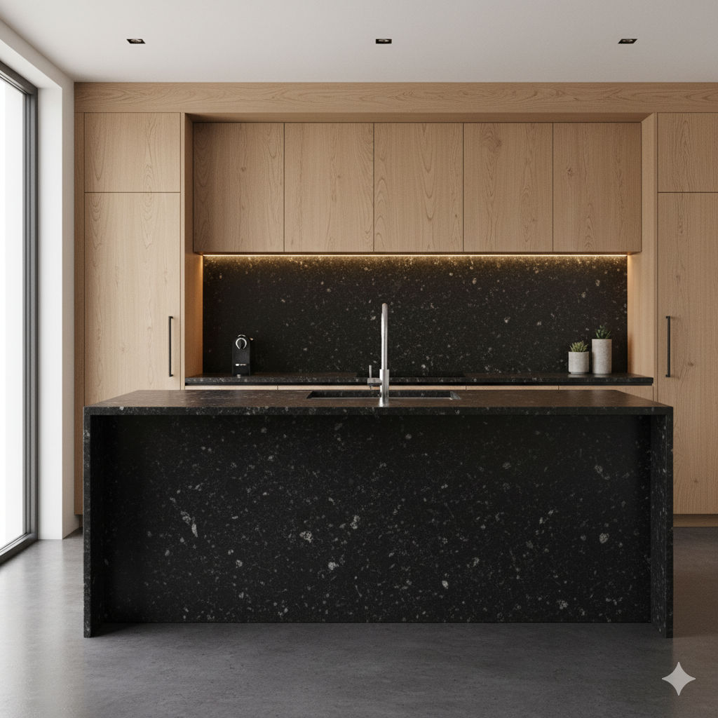 Plan de travail en Granit Noir Angola — Sobriété, solidité, haut de gamme