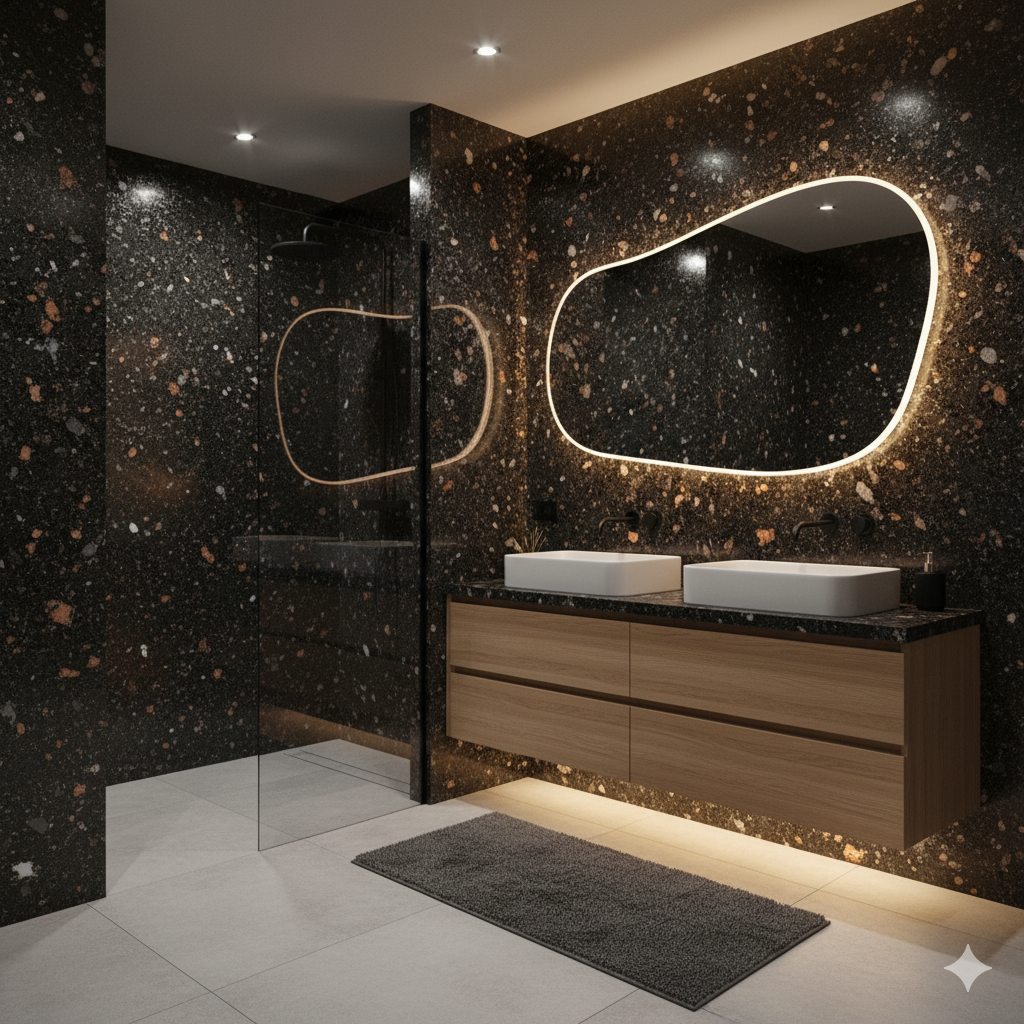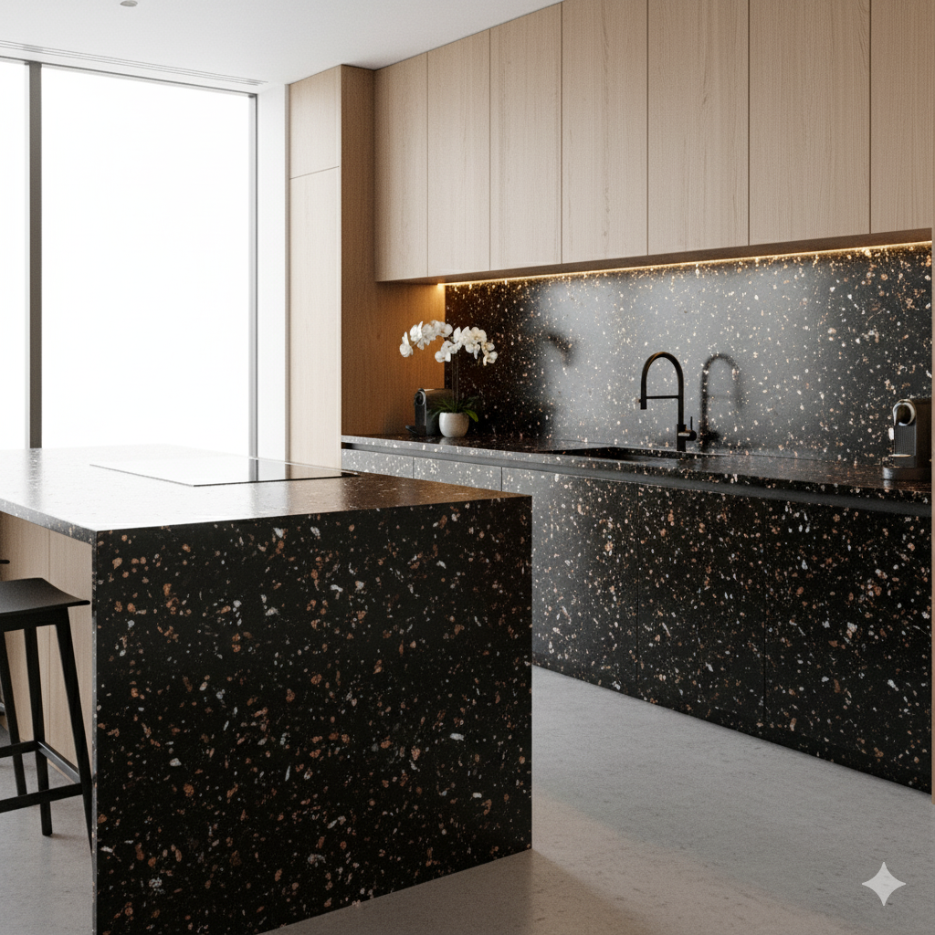 C’est une alternative au granit ou au marbre pour les cuisines, salles de bain ou espaces design nécessitant un entretien minimal.