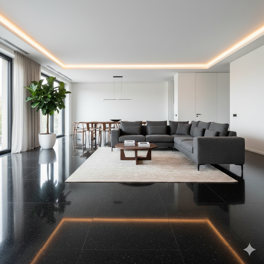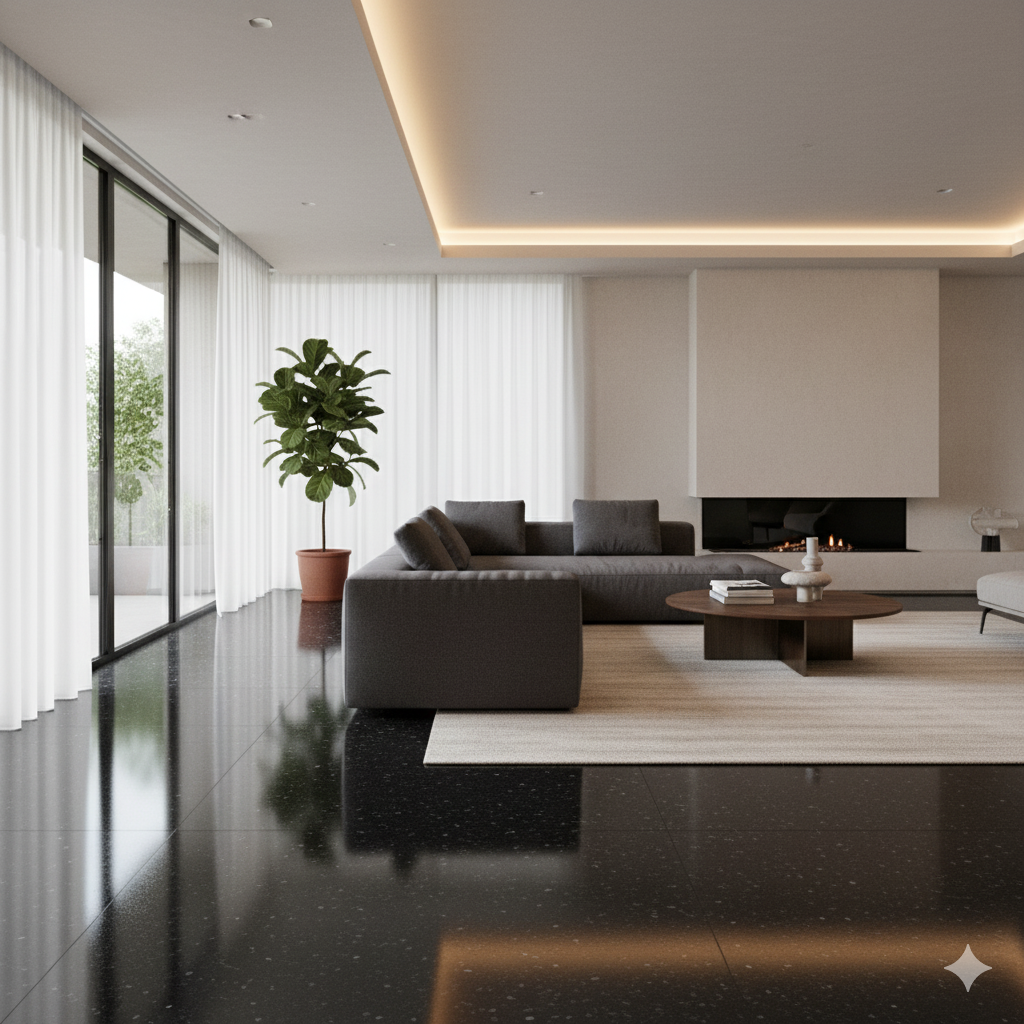 Posé au sol, il crée une ambiance élégante, moderne et durable, tout en restant très facile d’entretien.