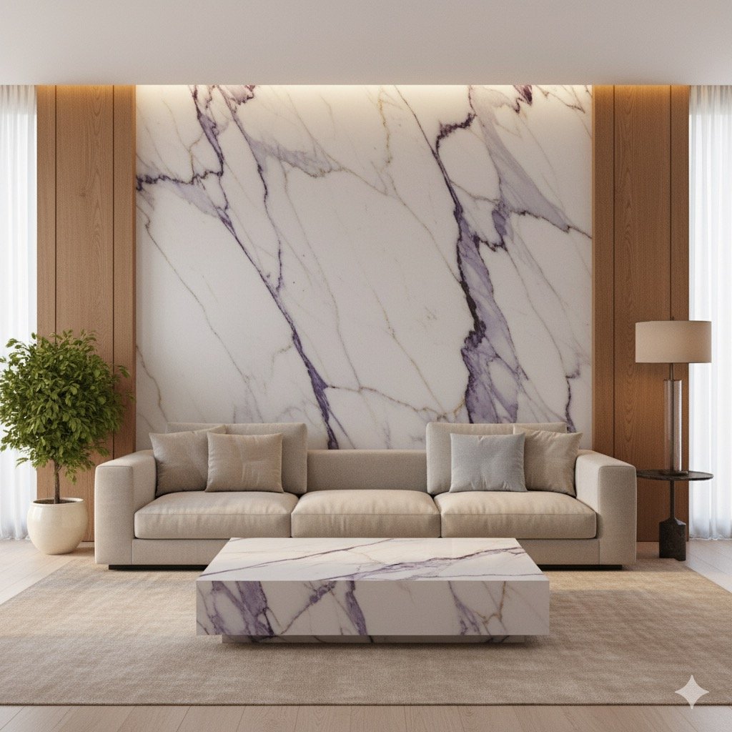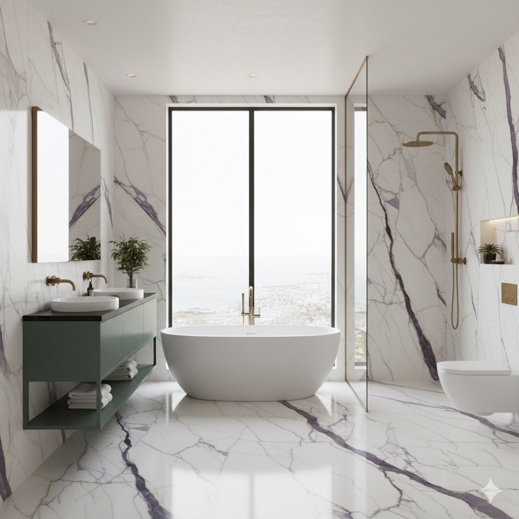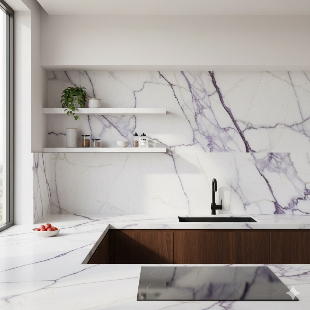 Le Calacatta Viola provient de carrières italiennes réputées pour la pureté de leur marbre et la richesse de leur veinage.